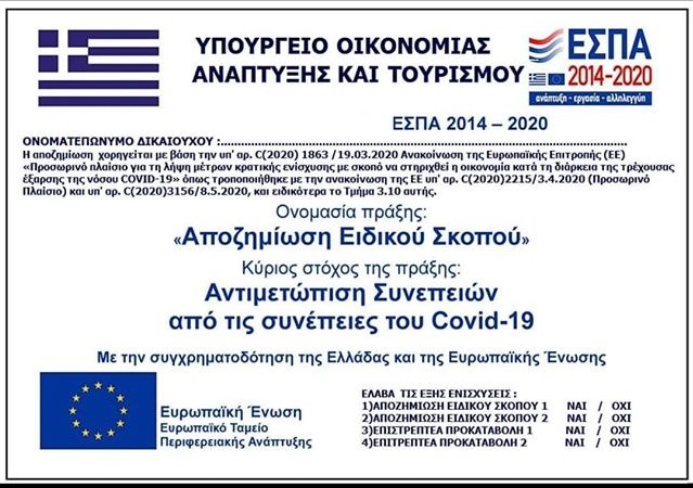 o        Ανάρτηση αφίσας Α3 στην επιχείρηση για ενημέρωση του κοινού ότι δόθηκε η αποζημίωση ειδικού σκοπού.